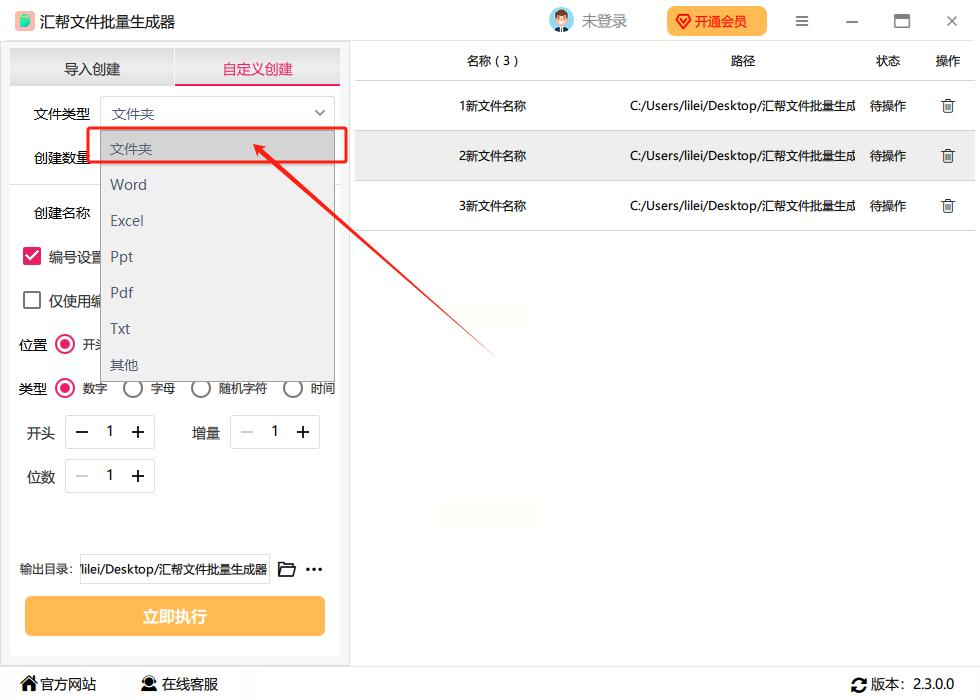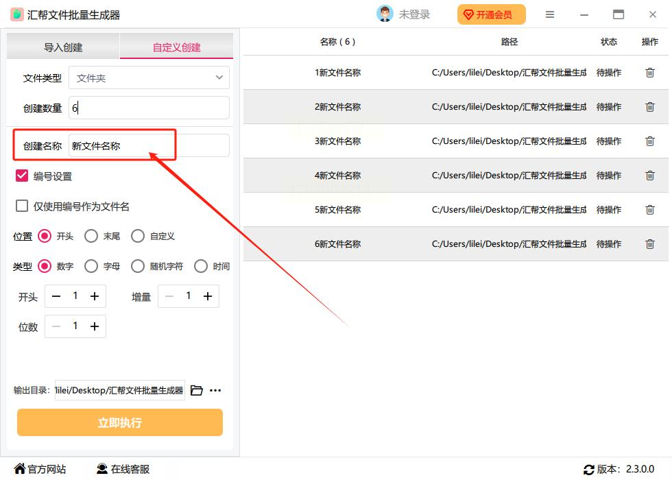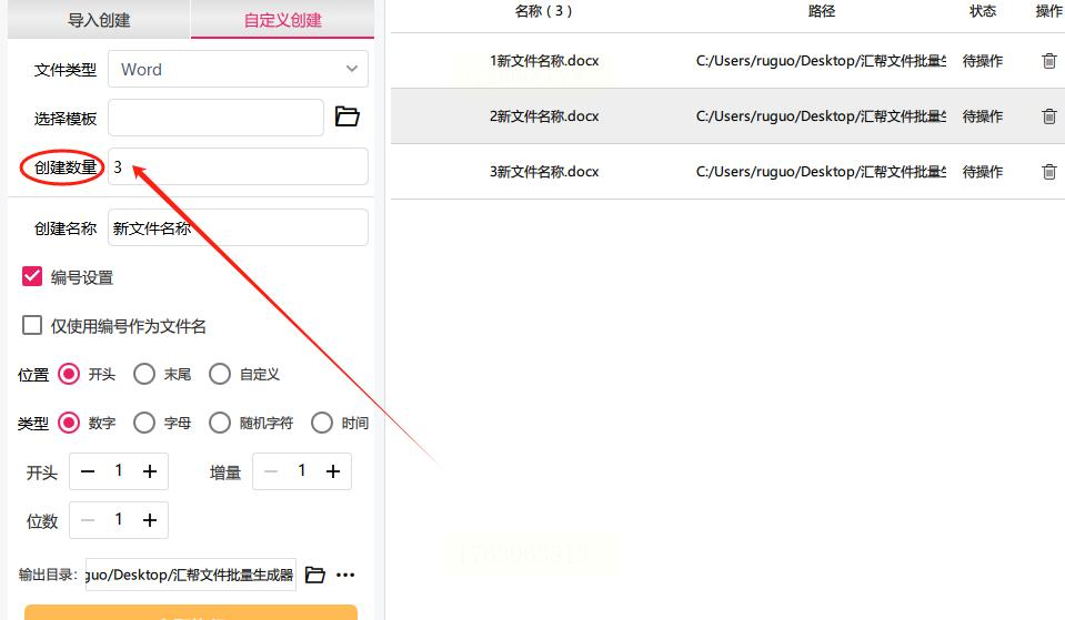 - 创建数量:输入你要建多少个文件夹,比如“100”;