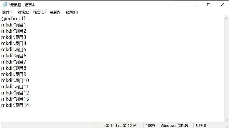 解释一下:`/l`是循环,`1,1,100`表示从1到100循环,`mkdir`是创建文件夹,“项目文件%i”是文件夹名称(%i会自动替换成1-100的数字)。