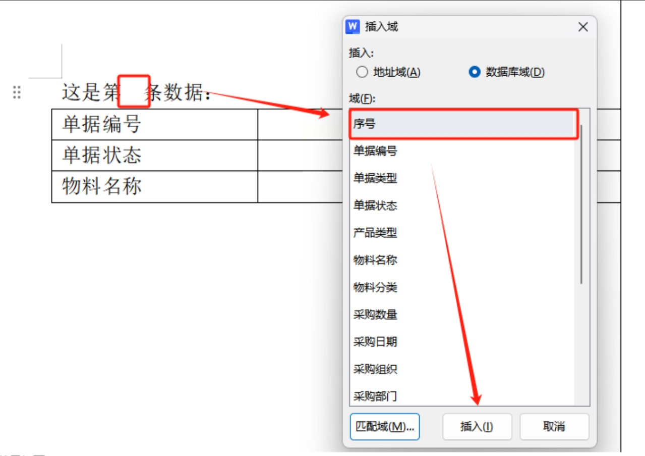 3. 插入合并域: 将光标定位到Word表格中需要插入数据的单元格位置。点击“插入合并域”,选择对应的Excel表头名称,将其插入到单元格中。重复此操作,将所有需要插入数据的位置都设置好合并域。
