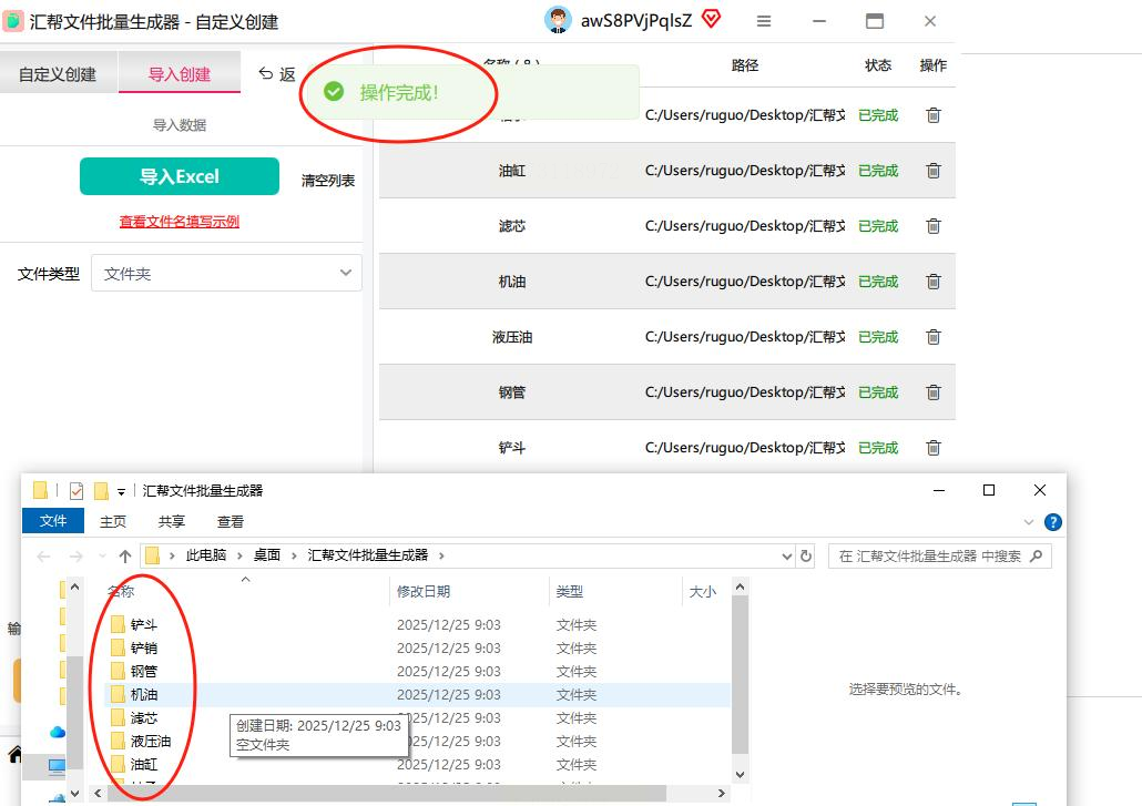 生成完成后,直接前往指定文件夹查看。所有名称都会严格按照Excel中的列表创建,没有错误或遗漏,此时你可以继续进行后续操作,比如移动文件或添加子文件夹。