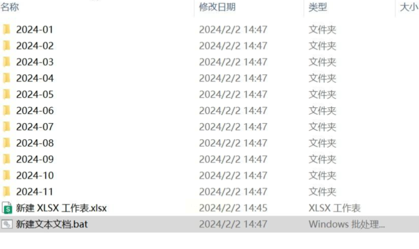 然后复制到bat文件中执行,即可生成嵌套文件夹和对应文件。