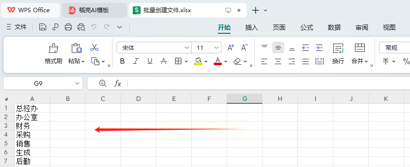 若需要同时创建带扩展名的文件,可在Excel中添加第三列内容,例如: