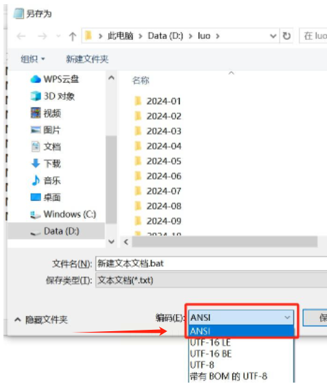 - 若文件名包含中文,需将文件编码设置为ANSI