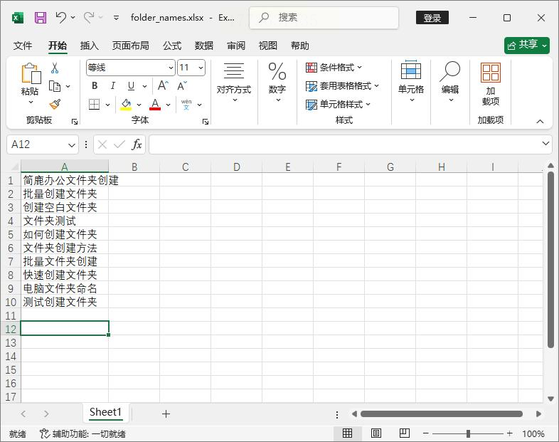 打开Excel软件,在第一列(A列)中输入需要创建的文件夹名称,确保每个名称单独占一行,不包含多余空格或特殊字符。例如,客户名称、项目代号、产品型号等。保存时建议使用.xlsx格式,避免版本兼容性问题。