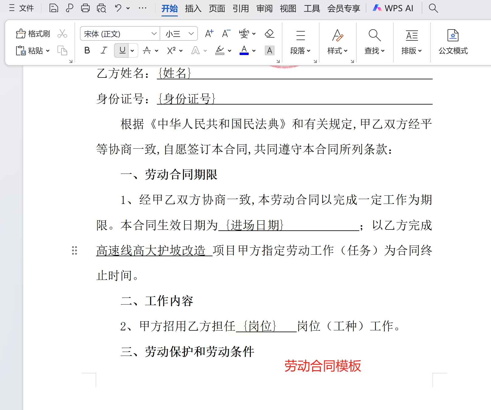 - Word模板里的空白处也得对应上:比如在模板里要填姓名的地方,直接输入`{姓名}`,部门那里输入`{部门}`,工号那里输入`{工号}`。记住一定要用大括号,而且和Excel表头一模一样,不然软件识别不了!