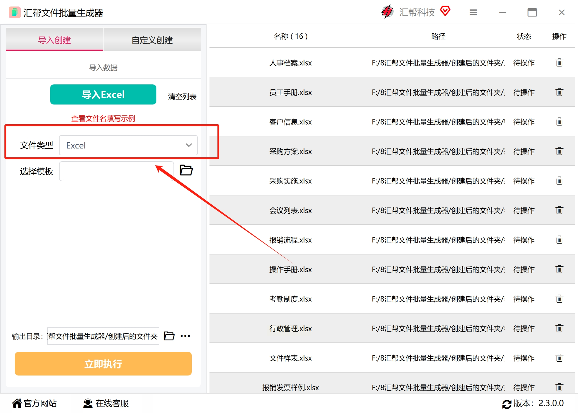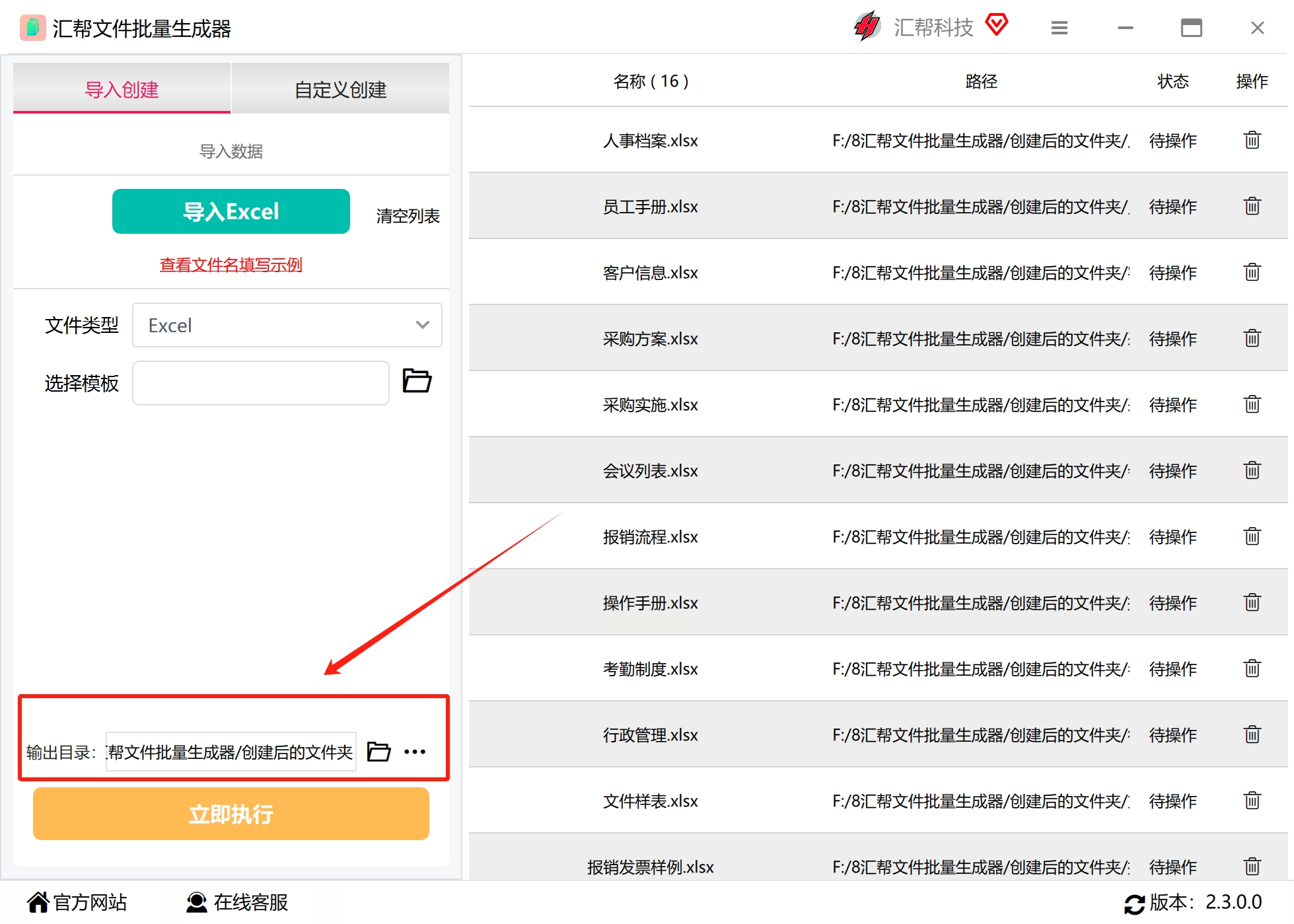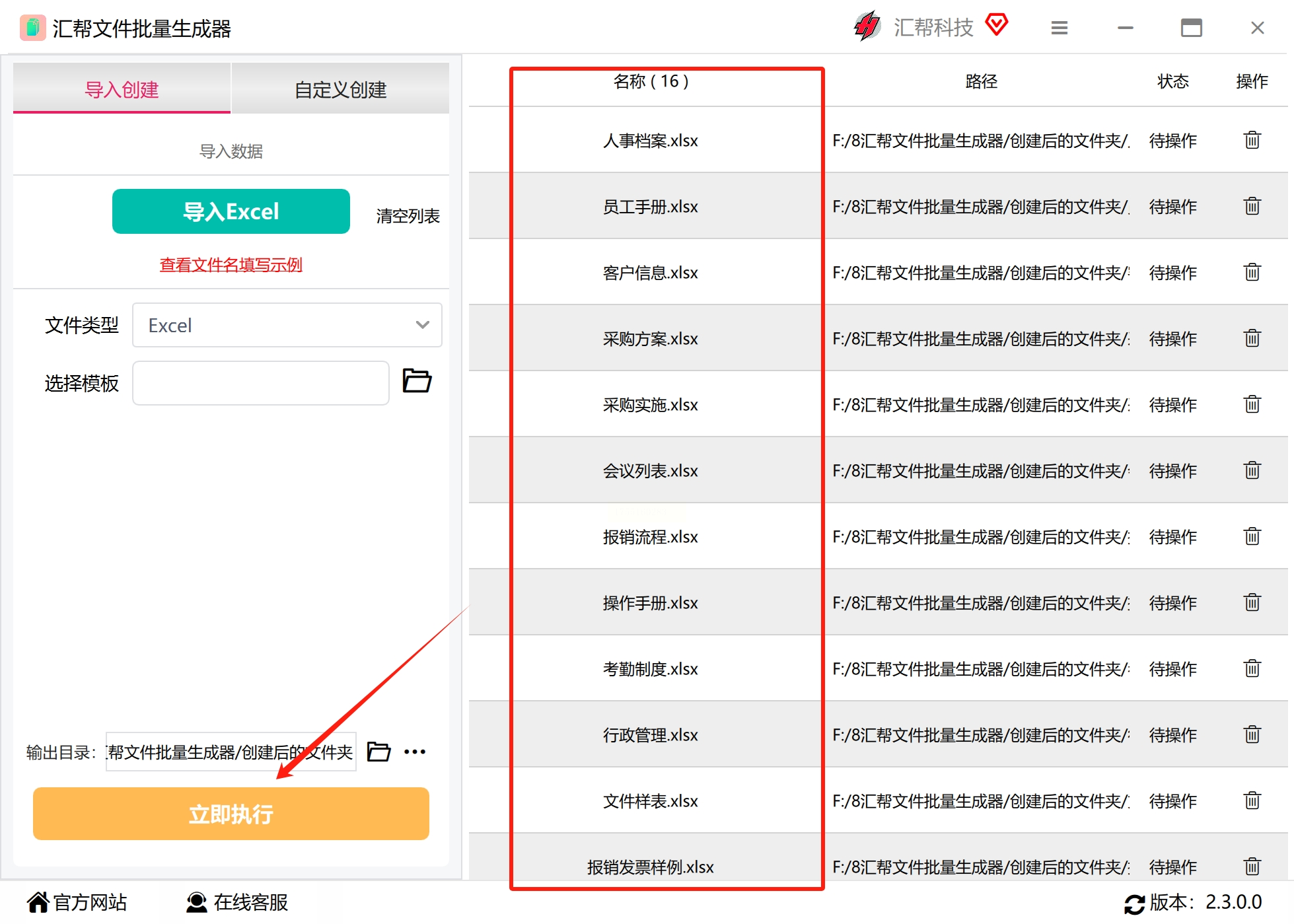 步骤7:确认所有参数后,点击"立即执行"按钮开始生成文件。