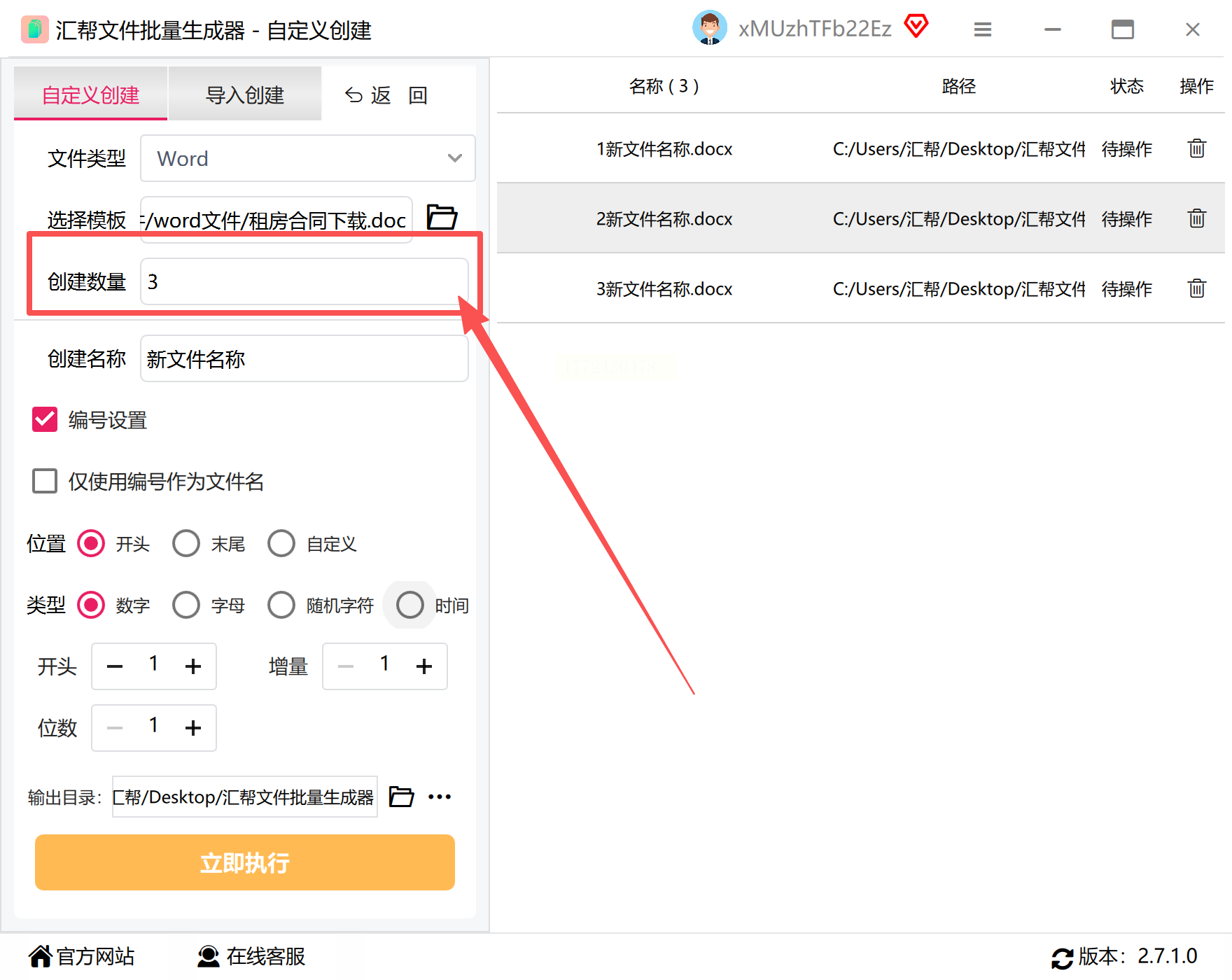 3. 设置生成数量(建议10份以内先测试,多了怕格式乱)