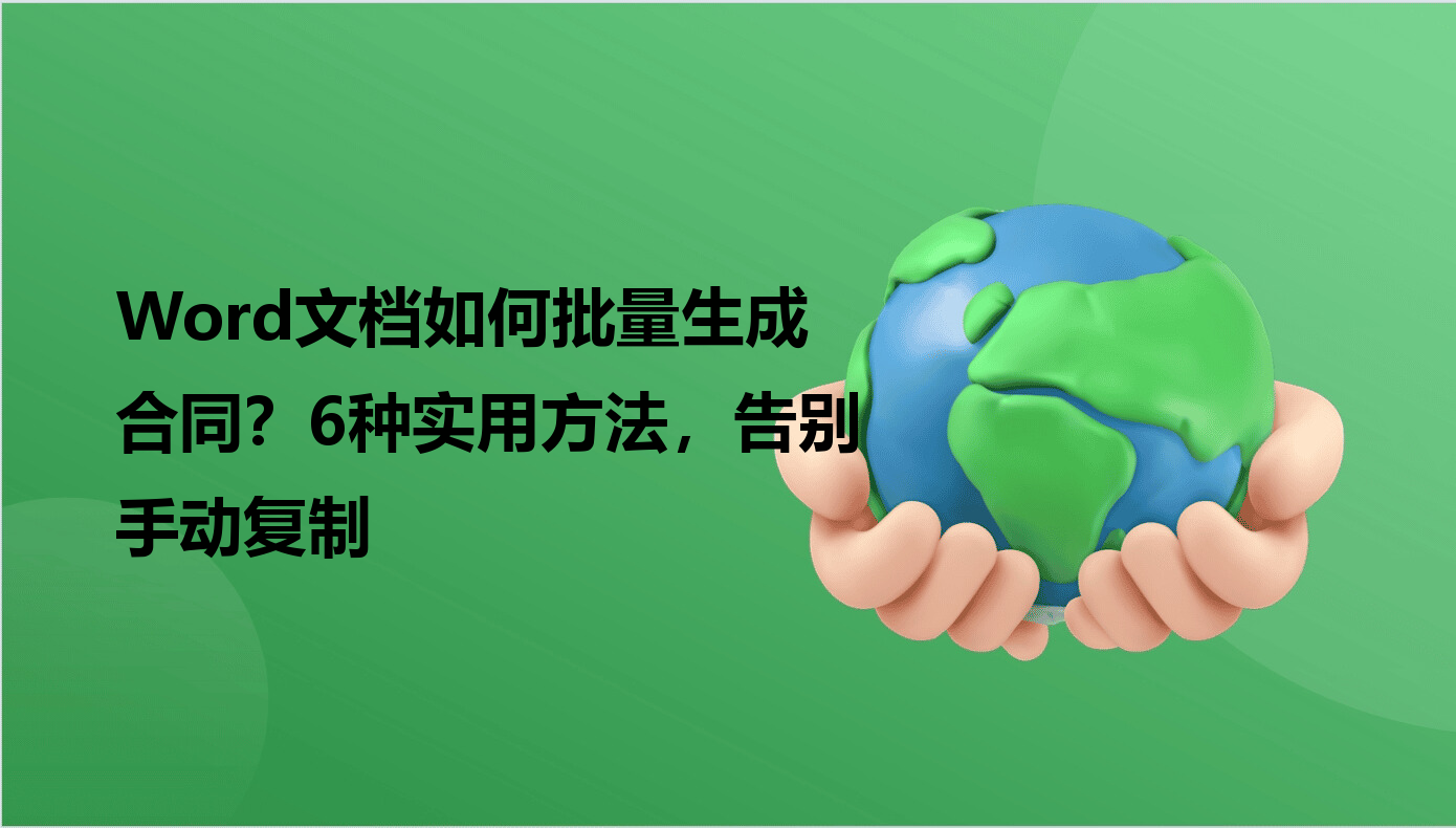 之前在小公司做行政,每月要给20+客户发合同,手动复制粘贴改信息改到眼瞎!有次某公司名字打错导致合同作废,被老板念叨了半个月...后来发现原来批量生成合同没那么难,那么word文档如何批量生成合同?试了6款工具后整理出这篇超实用的教程,数据安全、操作难度、价格全给你们对比透~