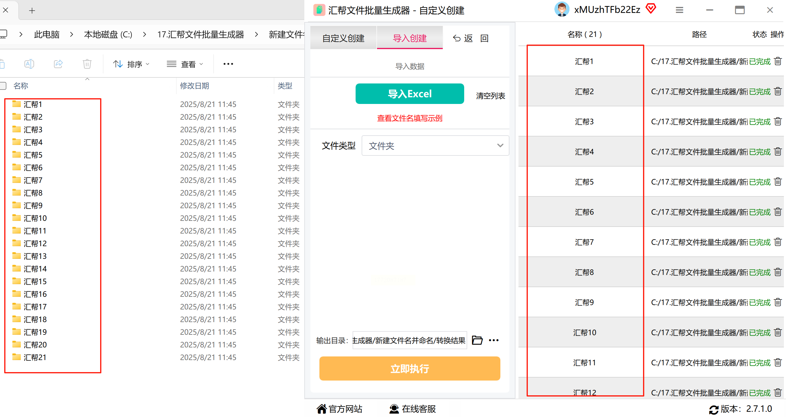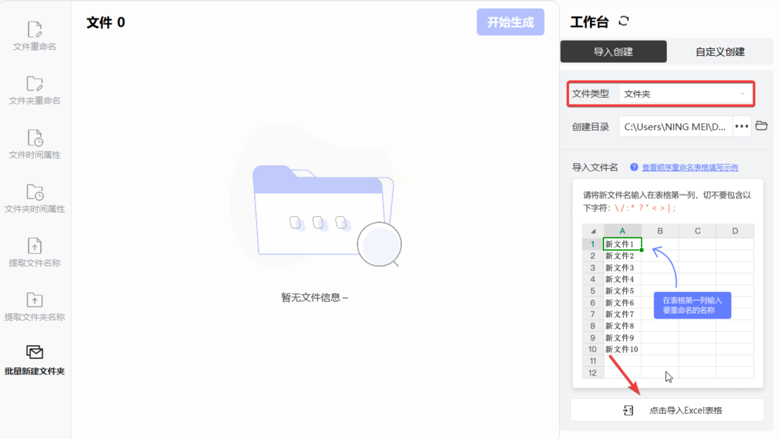 适合场景:按Excel名单批量建文件夹,如员工档案、客户资料