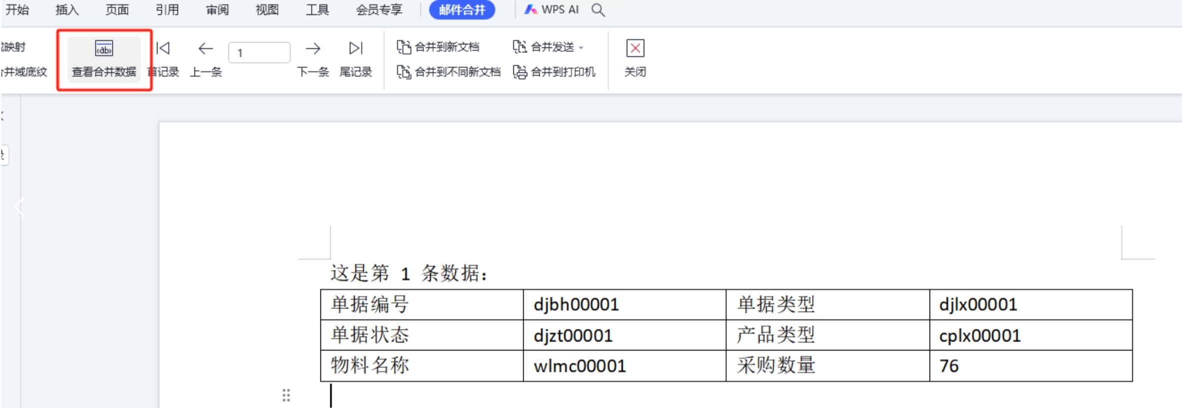 3. 使用工具栏上的“上一记录”、“下一记录”箭头按钮,可以像翻页一样查看每一条数据填充到模板后的效果,仔细检查格式和数据是否正确。