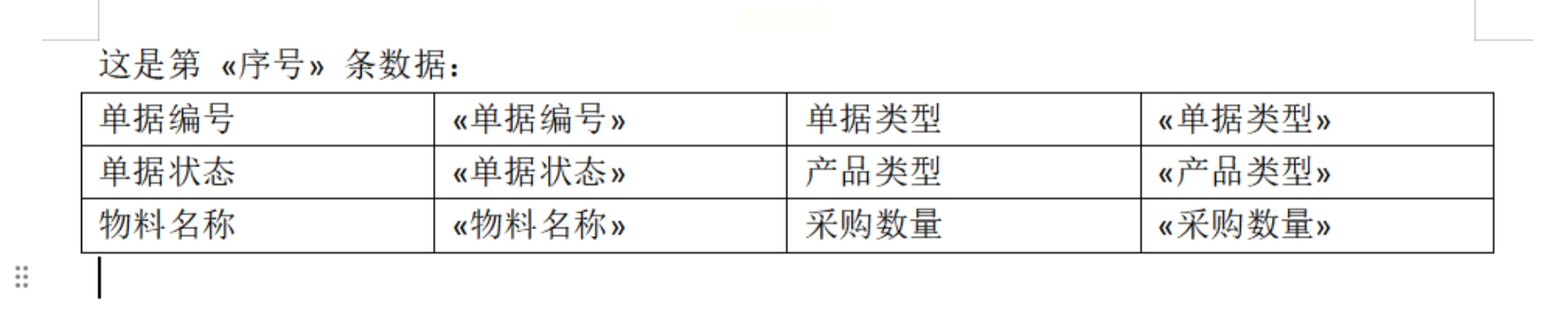 4. 重复以上操作,将表格中所有需要填充数据的位置都插入对应的“合并域”。