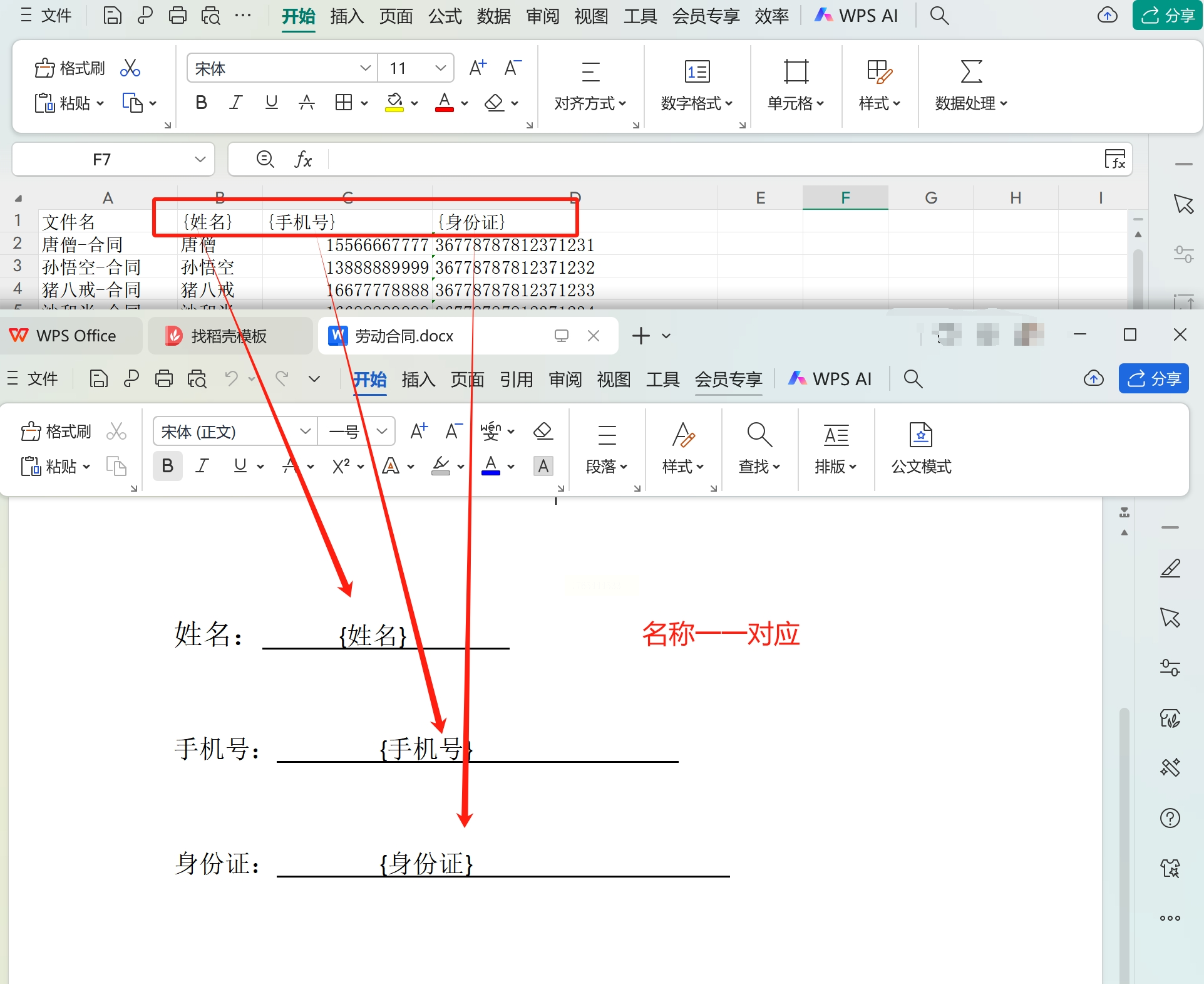 1. Excel模板要填对:打开Excel表格,第一列必须写上"文件名"(这个是软件识别不同文件的暗号哦),后面每一列对应你Word里要填的内容,比如"销售额""区域""客户名称"。记住表头要用大括号`{}`包起来,像这样:`{文件名}`、`{销售额}`,这样软件才能精准定位到要填的位置!