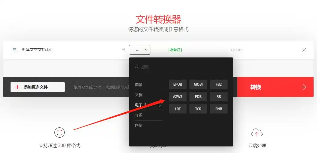 第二步,点击"添加文件"按钮,把你要转换的TXT文件传进去,这里支持批量上传,一次可以拖多个文件进来,省时间。