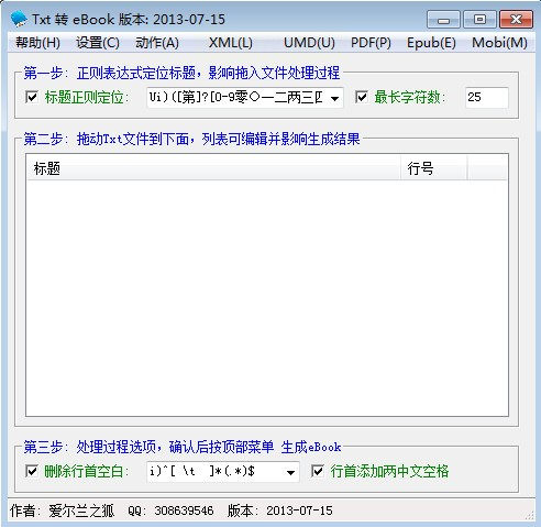 TXT2ebook是个小巧的工具,只有3-4MB,不用安装,解压后直接双击就能用。打开软件后界面特别简洁,就两个主要按钮:"添加文件"和"转换"。第一步,点击"添加文件",把TXT文件选进来;第二步,在"输出格式"里选"EPUB";第三步,设置好保存位置,点击"转换",几秒钟就能完成。这个工具的特点是纯转换功能,没有多余的设置,新手用起来完全不用看教程,打开软件就知道怎么操作,适合快速转换单个TXT文件,体积小不占内存,电脑里留一个随时能用。