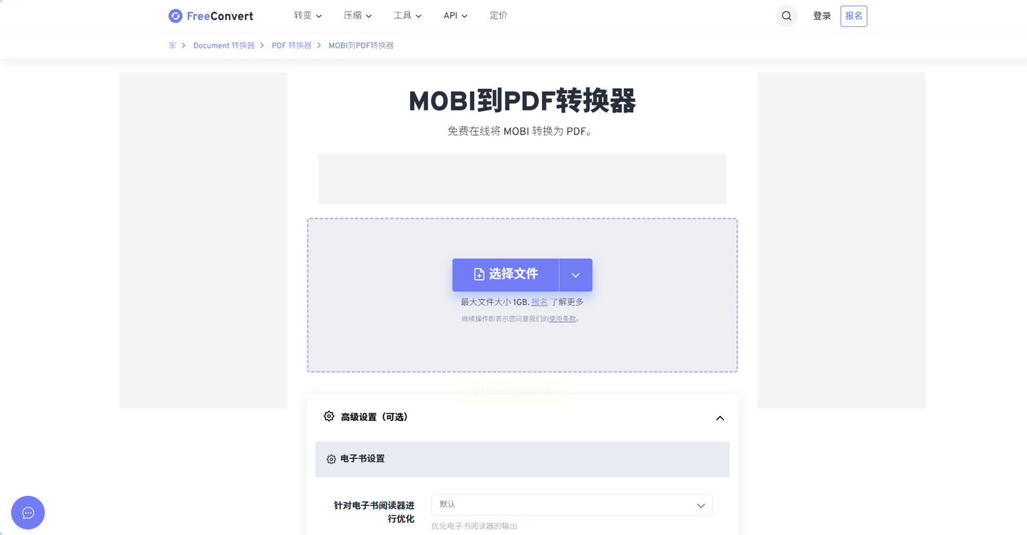 作为综合性在线转换平台,FreeConvert的MOBI转PDF功能提供1GB的文件处理上限,远超同类在线工具的500MB限制。对于超过300MB的漫画或扫描版书籍,其文件处理能力尤为突出。