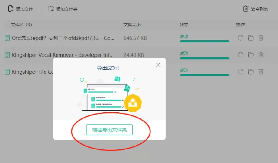 4. 查看结果:转换完成后,点击“前往导出文件夹”,直接在弹出的文件夹里找到PDF文件,打开检查内容