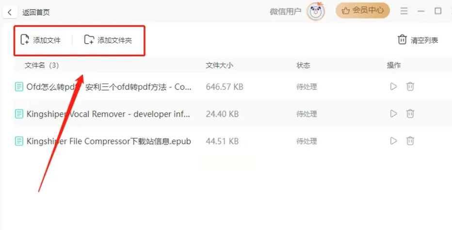 2. 导入文件:点击“添加文件”或“添加文件夹”,如果是多个文件,选“添加文件夹”更方便(直接把所有epub文件放在一个文件夹里,一次性导入)