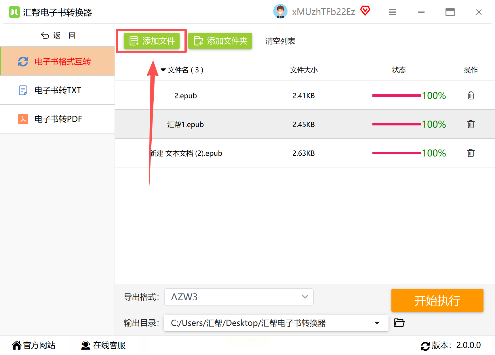 安装并运行,主界面清晰展示三大功能模块。选择“电子书格式互转”进入核心转换界面,这里是处理EPUB转AZW3的主要工作区。