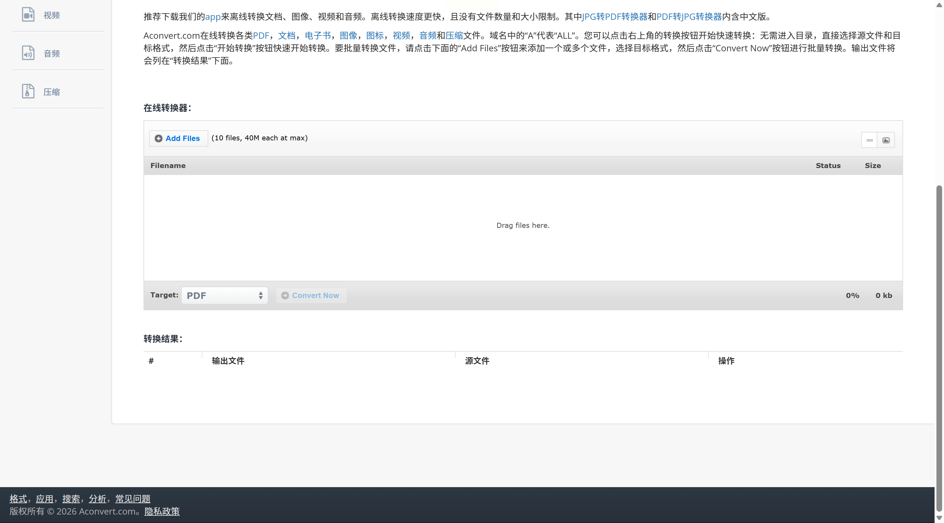 如果您需要临时转换一个文件,又不希望在任何设备上安装软件,ACONVERT提供了另一种在线选择。这个平台同样免费且无需注册,通过浏览器即可完成全部操作,适合在公共电脑或临时设备上应急使用。