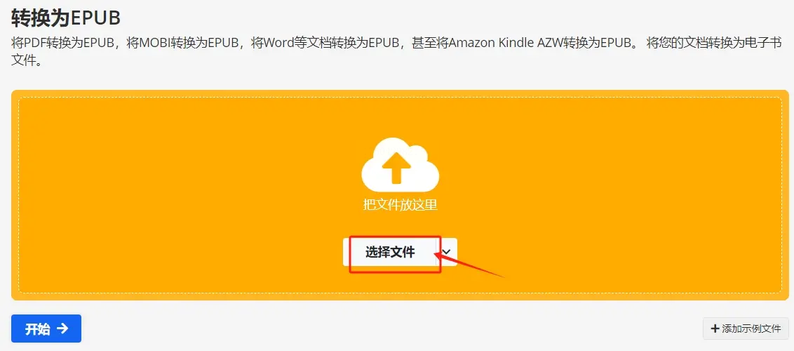 1. 进入Ebook2Mobi在线平台,选择“转换为EPUB”;