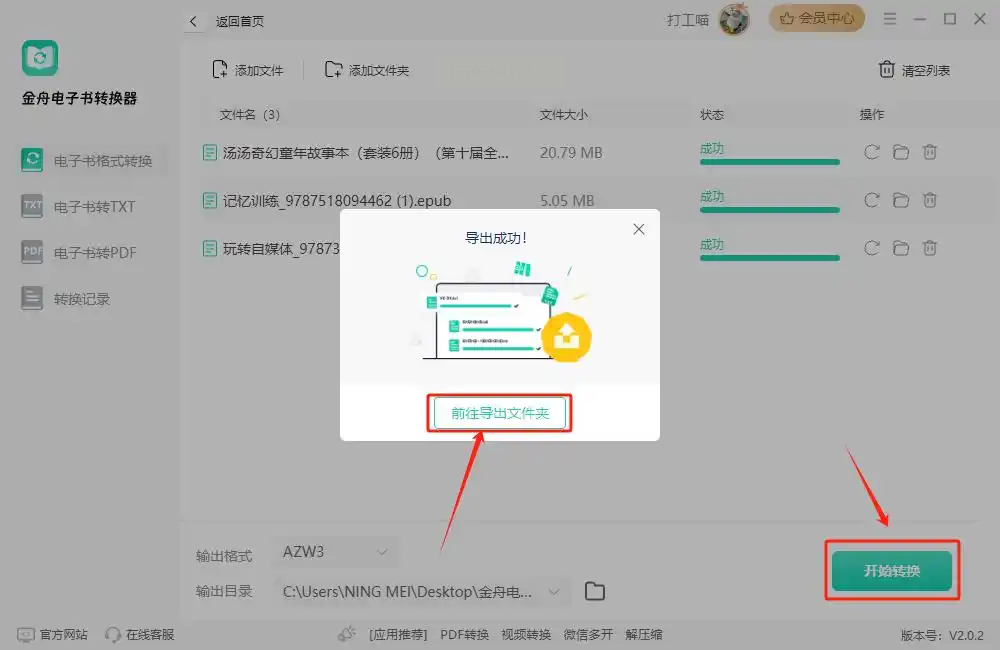 5. 查看结果:转换完成后自动弹出文件目录,可直接检查AZW3文件是否正常。