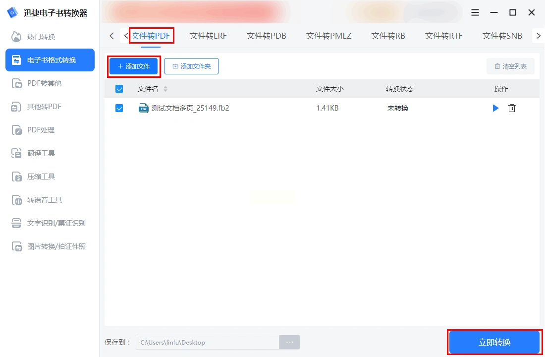 步骤二:点击“添加文件”按钮,从你的电脑里选中那个需要转换的FB2格式电子书,把它导入到软件的任务列表中。