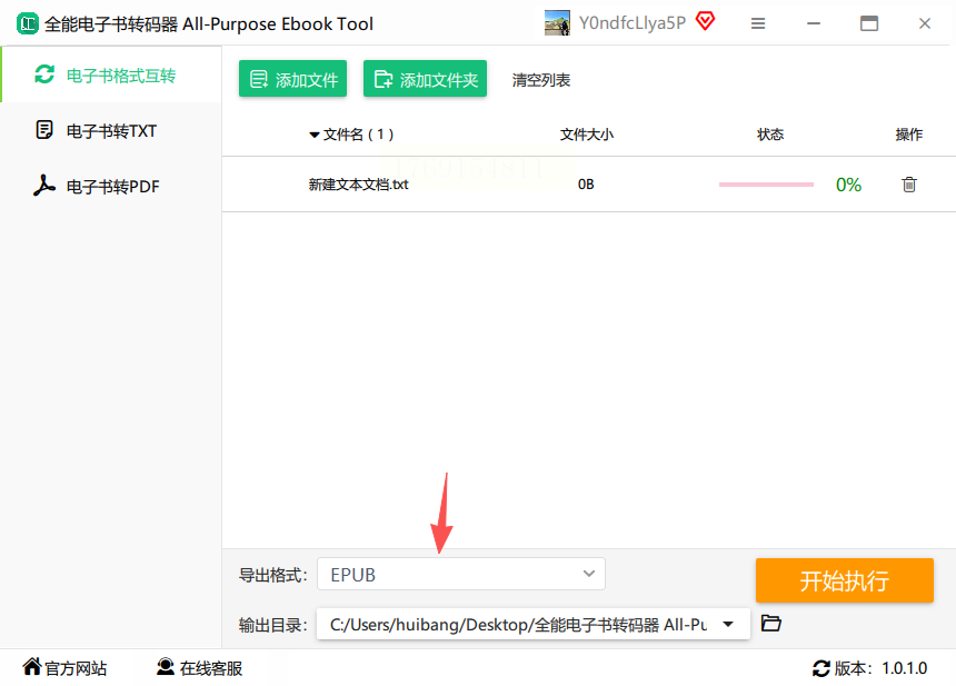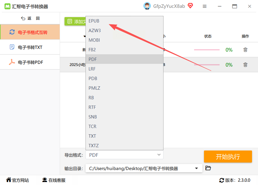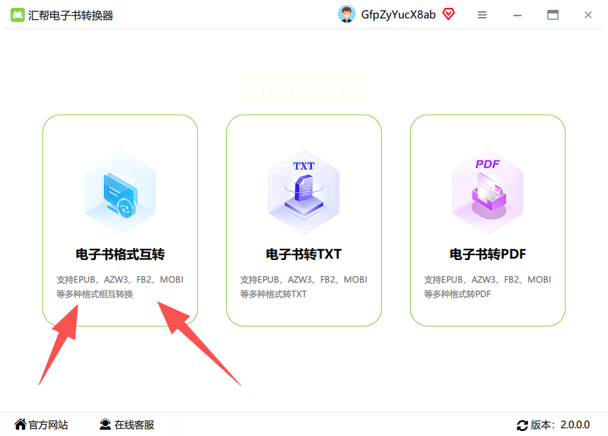 在软件主界面左侧菜单栏找到"格式互转"选项,点击进入后,你会看到多种格式转换选项,包括TXT、EPUB、PDF等。选择"电子书格式互转"模块,界面会显示支持的输入输出格式列表。