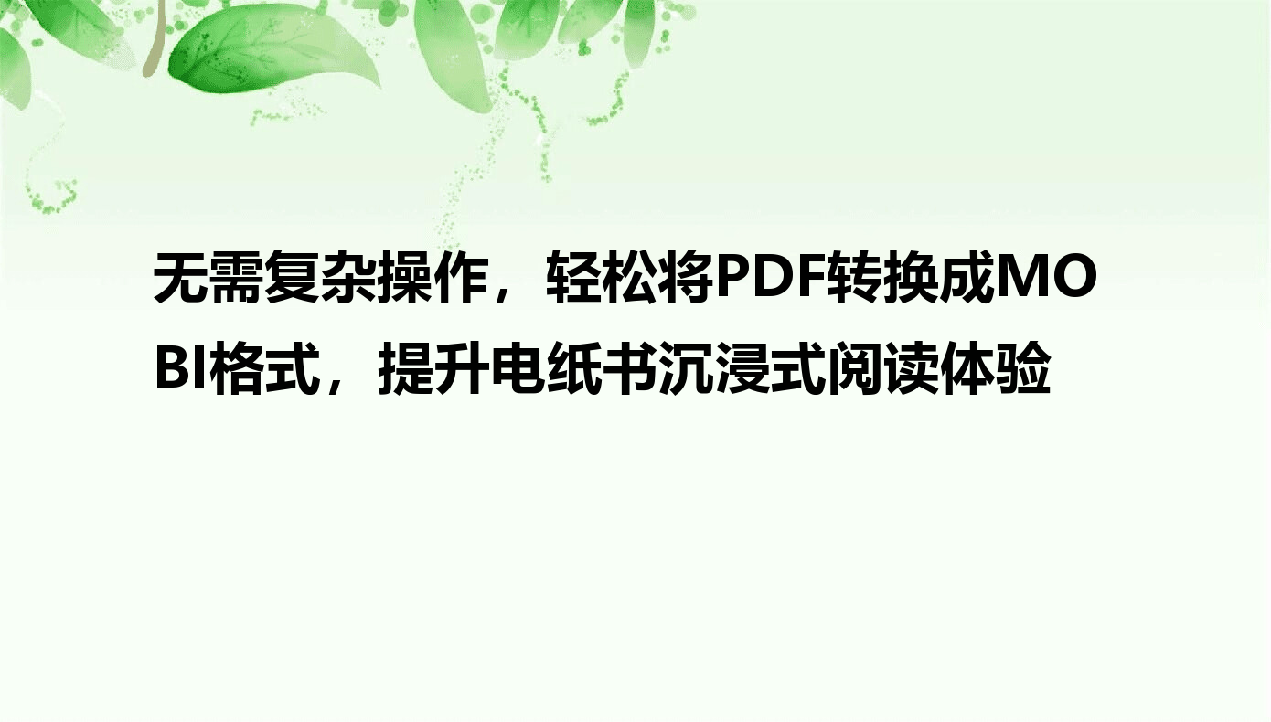 在数字阅读日益普及的今天,我们常常会从网络上下载各种资料和电子书,其中PDF格式因其良好的稳定性和兼容性,成为了文档分享的主流选择。然而,当你打算在亚马逊Kindle等专用电子书设备上享受沉浸式阅读时,可能会发现设备对MOBI格式的支持更为友好。这种格式差异就像手头有一把精美的钥匙,却找不到对应的锁孔,让人不禁思考:如何轻松地将PDF文档转换成适合电纸书阅读的MOBI文件呢?其实,解决这个难题并不复杂,市面上存在多款实用工具,能够高效地完成格式转换,让你的阅读体验更加顺畅。接下来,我们将一起探索几种简单易行的方法,帮你快速实现PDF到MOBI的转变,无论是为了工作学习,还是休闲娱乐,都能找到适合自己的解决方案。