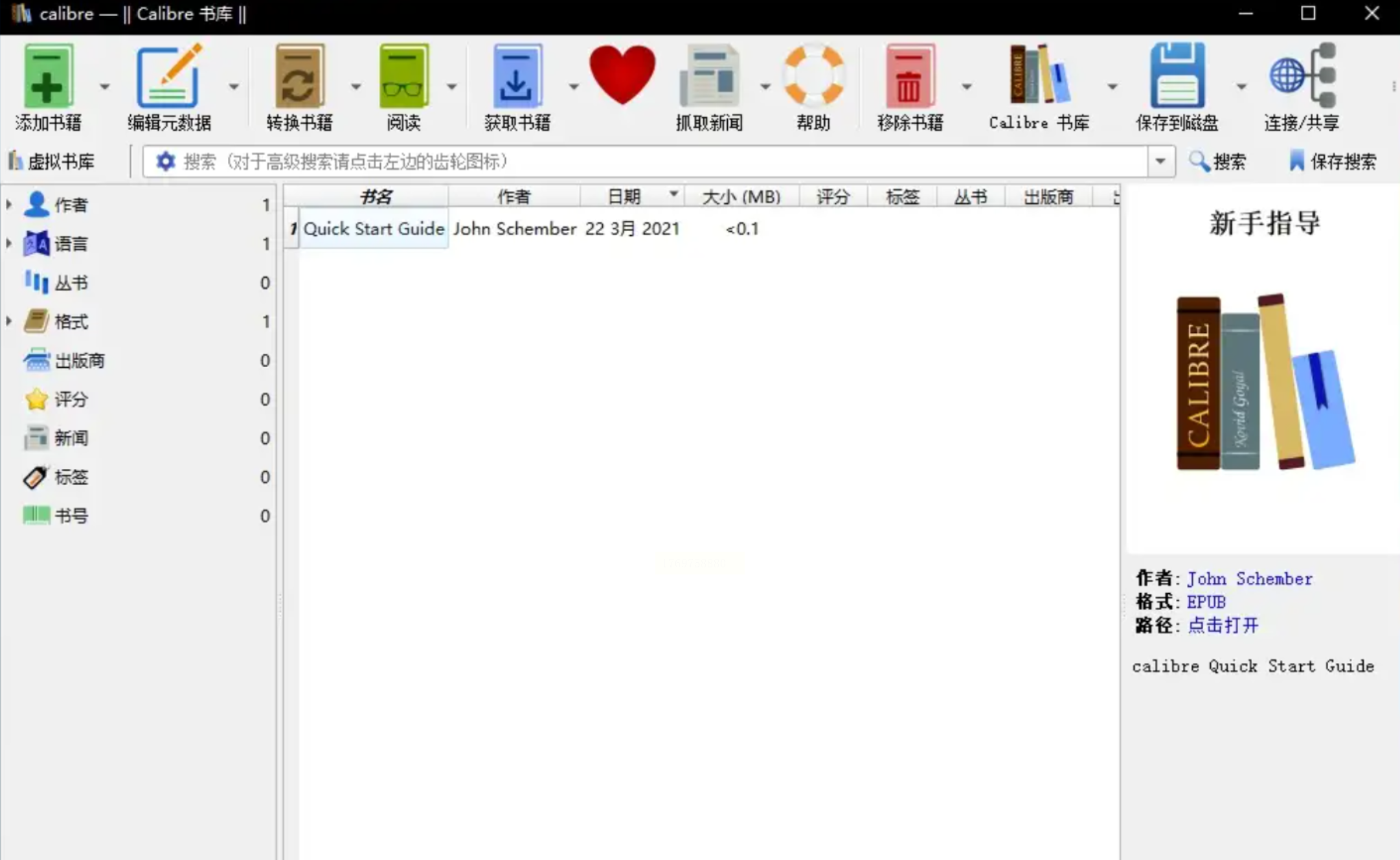 步骤一:访问Calibre官网下载并安装软件,整个过程完全免费,安装后打开主界面。