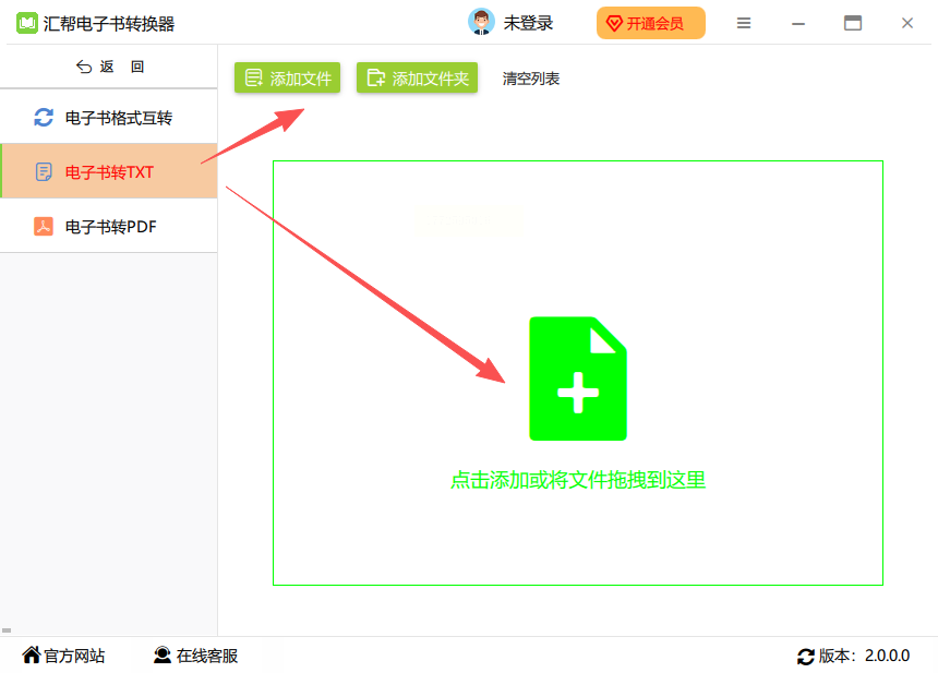 2. 选“EPUB转TXT”,然后点“添加文件”
