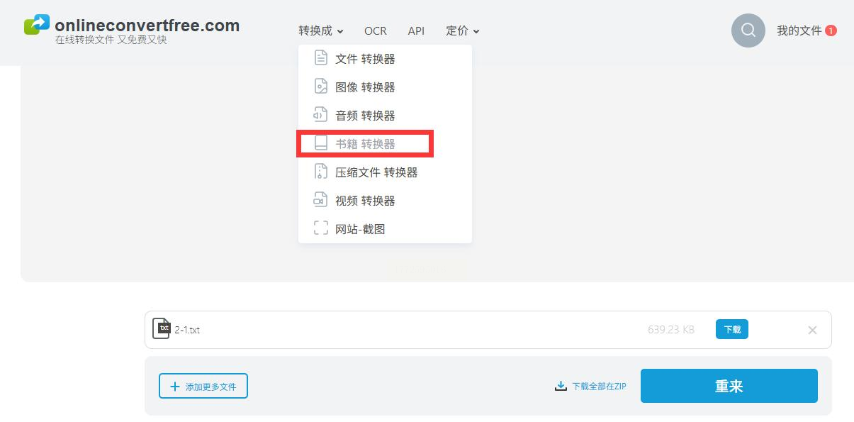1. 打开OnlineConvertFree的网站(直接搜名字就行),点“书籍转换器”那个板块