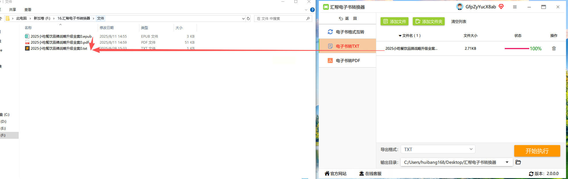 4. 等一会儿,转换完的txt文件会自动出现在你选的文件夹里,还会把原来的epub文件备份一份
