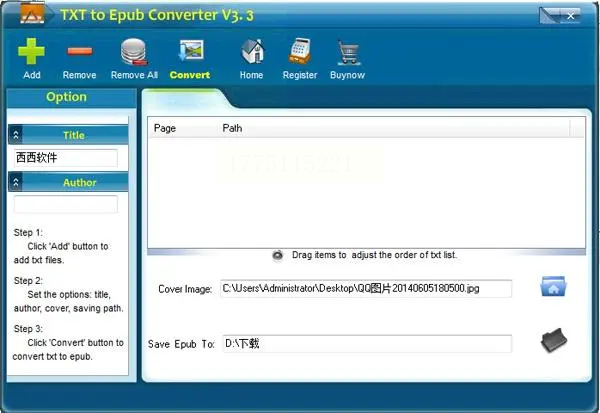 4. 可以设置EPUB的基本信息,比如书名、作者、封面(如果有封面图片可以选一张自己喜欢的放进去)