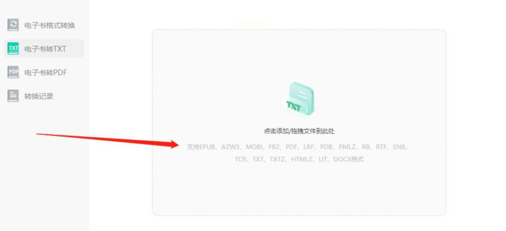 在左侧功能栏中,需手动点击“电子书转TXT”选项。这一步是关键,部分用户可能因忽略该步骤导致转换失败。完成点击后,软件会提示“请选择需要转换的文件”,界面将切换至文件导入环节。