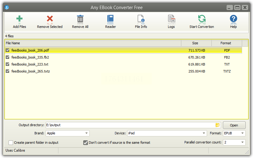 这款工具支持Kindle、Kobo等主流平台的电子书格式转换,转换速度快,而且界面干净无广告。打开软件后,选择"Add Files"添加文件,设置输出格式为TXT,点击"Convert"即可完成转换,适合喜欢简洁界面的轻度用户。