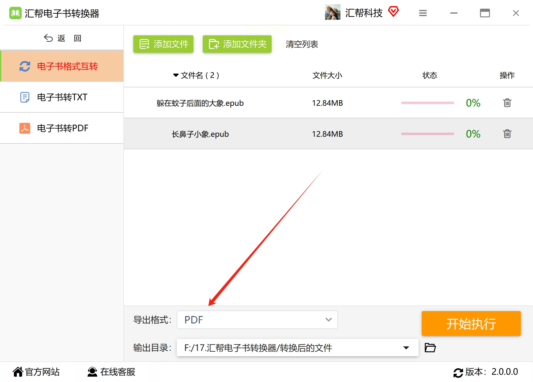- 输出格式:在格式下拉菜单里选“PDF”,这个是核心,其他格式比如epub、mobi都不用选。