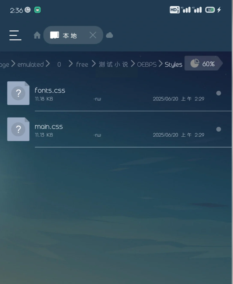 3. 修改文件内容:进入解压后的文件夹,找到“OEBPS”文件夹→“Styles”子文件夹,里面有一个“main.css”文件,长按选择“删除”(这个文件是控制格式的,删除后需要重新生成)。