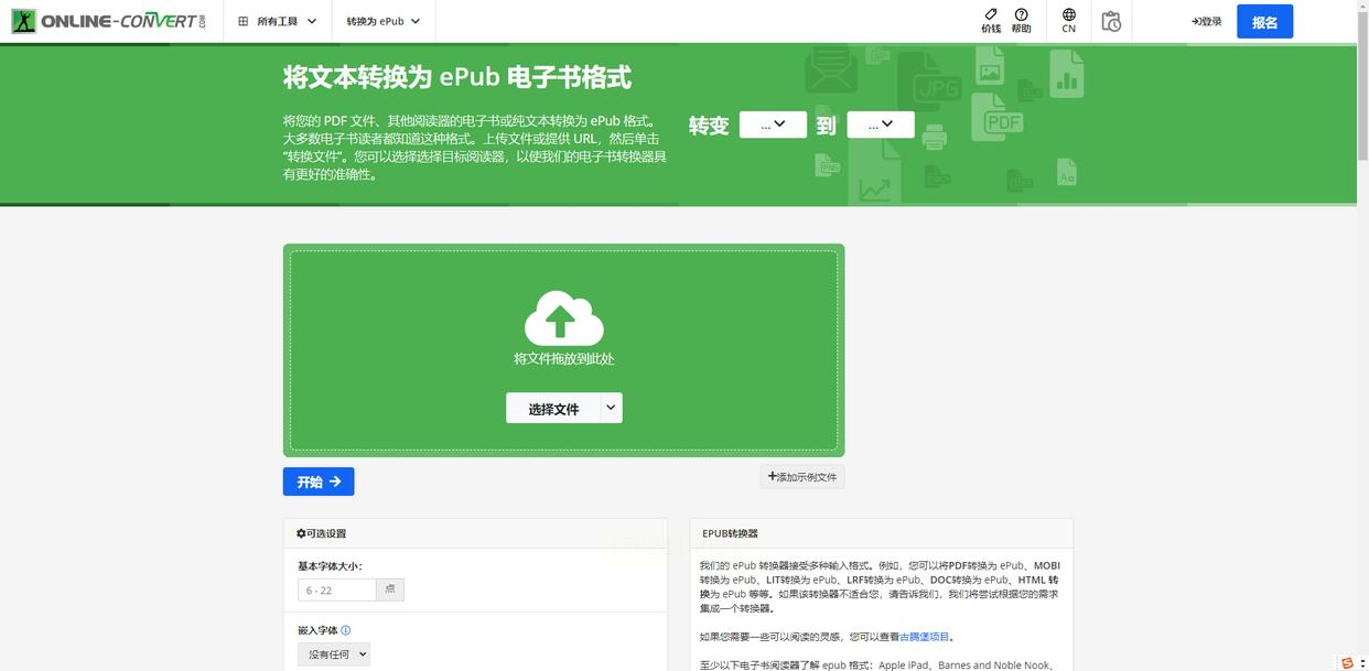 Online Converter是一个简单的在线电子书转换平台,专注于基本格式转换,操作直接。