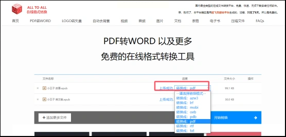这个工具的好处就是界面干净得像张白纸,点一下就能开始转,专门应对临时epub转换pdf的需求。支持ePub、Azw3、TXT这些常见格式,我用它处理过几百KB的短篇文档,转换速度比网页版快。