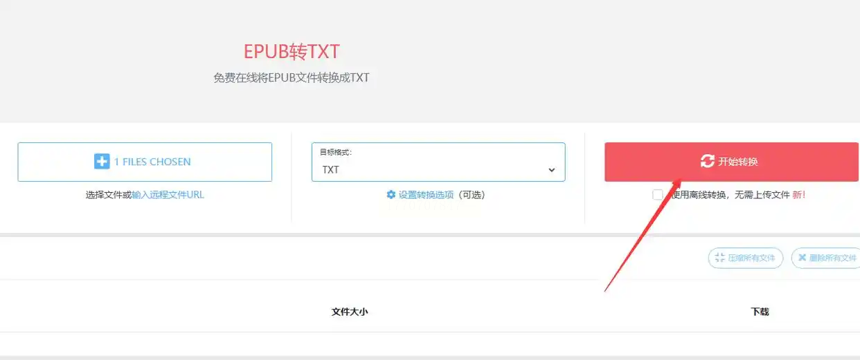 2. 点击"选择文件"上传epub电子书,支持最大10MB单文件;