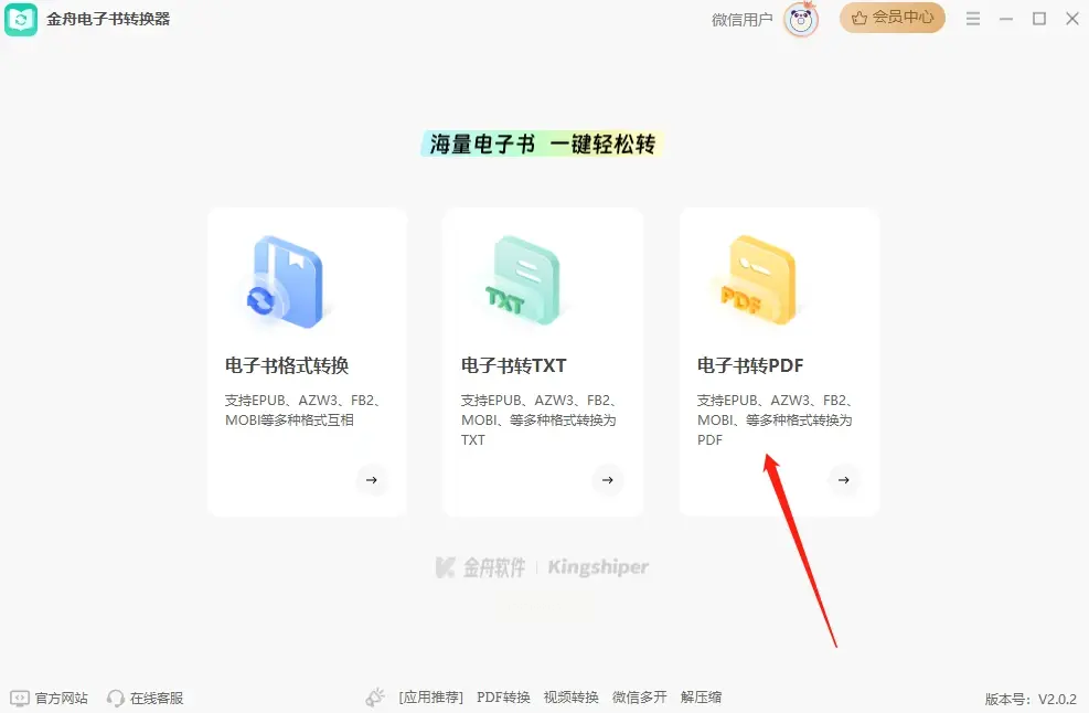 1. 启动软件后,在首页选择“电子书转PDF”模块;