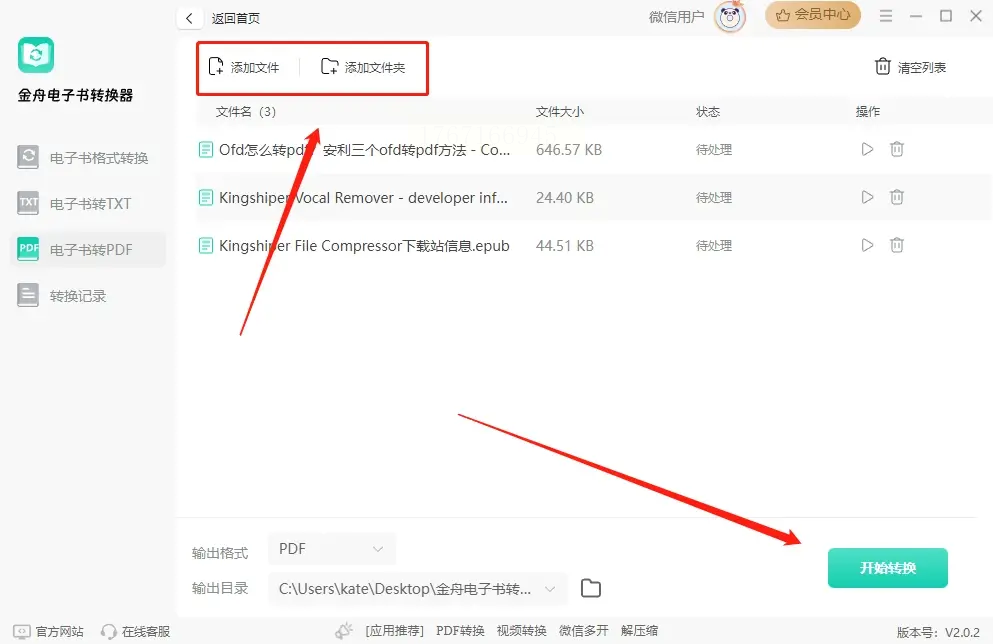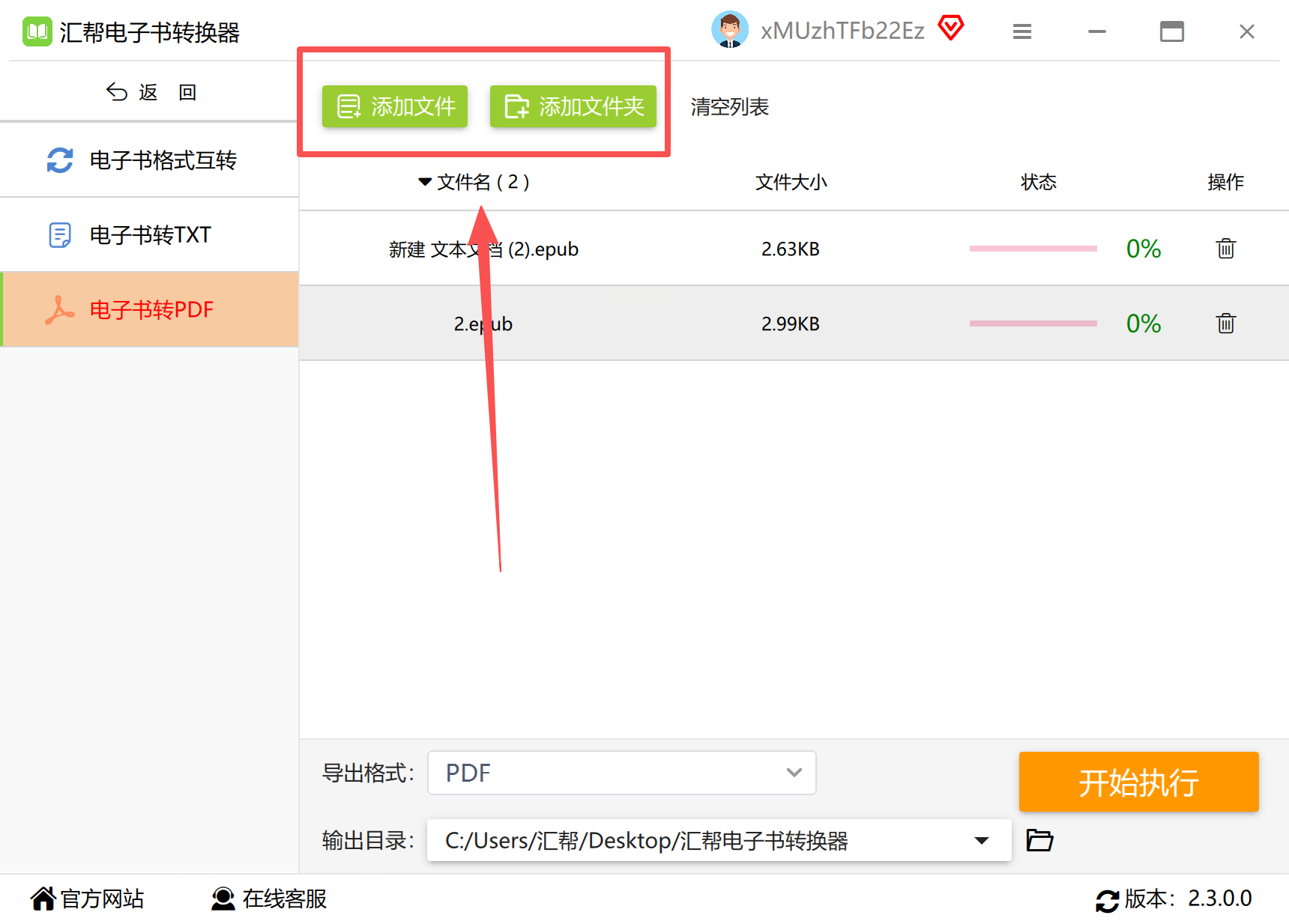 - 手动添加:点击界面中央的“添加文件”按钮,在弹出的文件管理器中选中单个或多个epub文件(支持Ctrl/Shift多选);