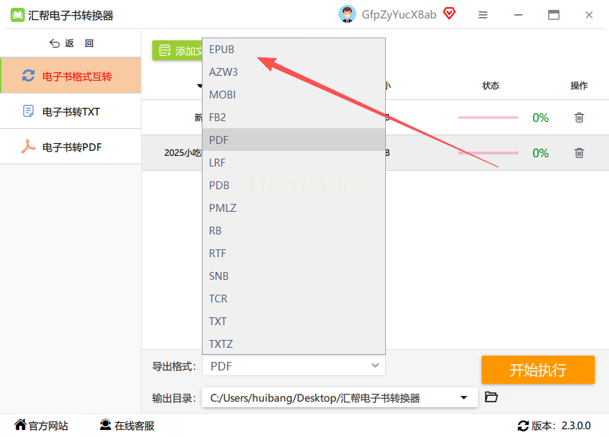 3. 选择输出格式:在下拉菜单中选择“EPUB”格式。