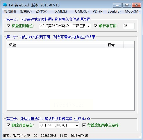 2. 导入TXT文件:点击“导入文件”按钮,选择需要转换的TXT小说,软件会自动识别分段结构。