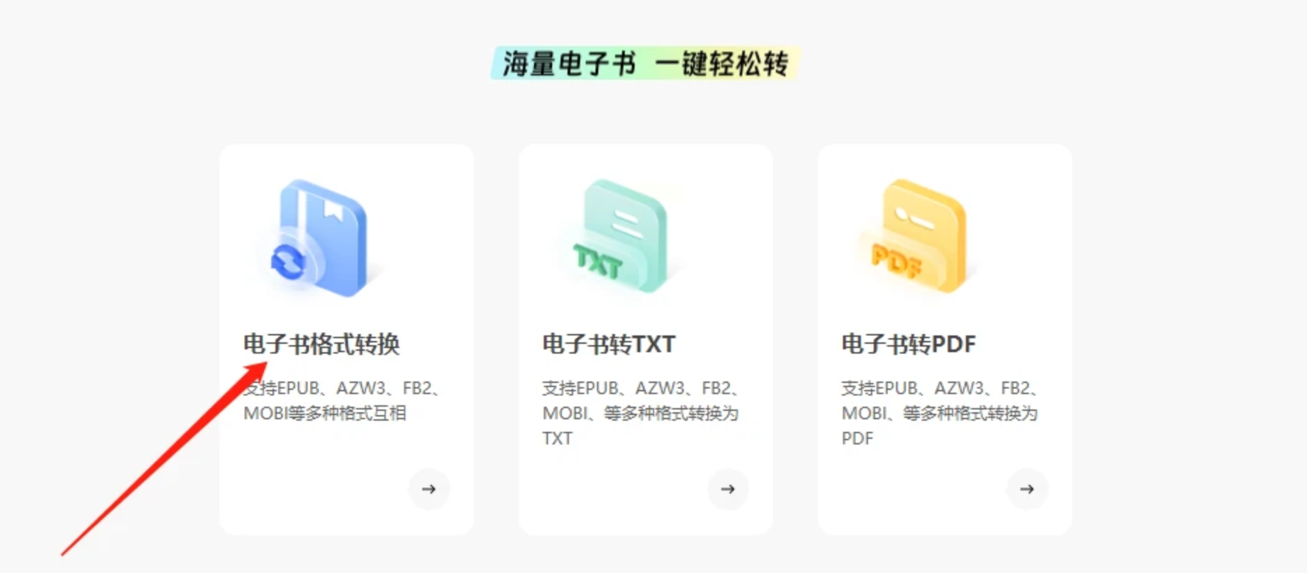 1. 选择"电子书格式转换"功能