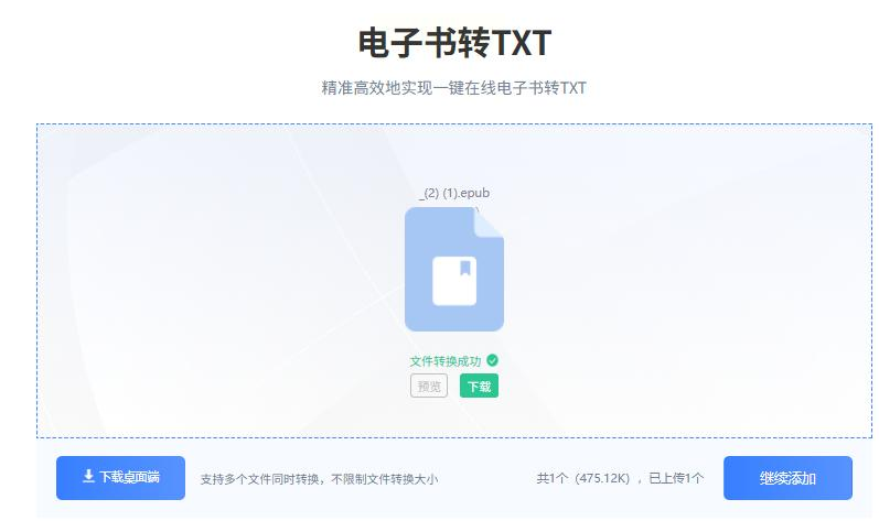 - 单个文件:点“添加文件”,在电脑里找到目标电子书(支持EPUB、MOBI、PDF等主流格式)