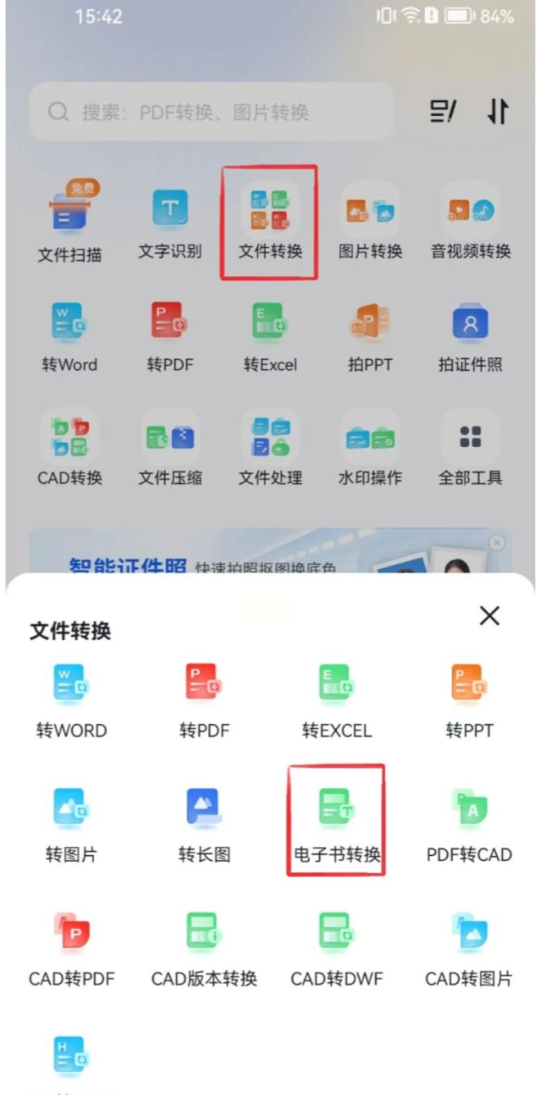 2. 进入功能页:打开APP后,首页找到“文件转换”→“电子书转换”