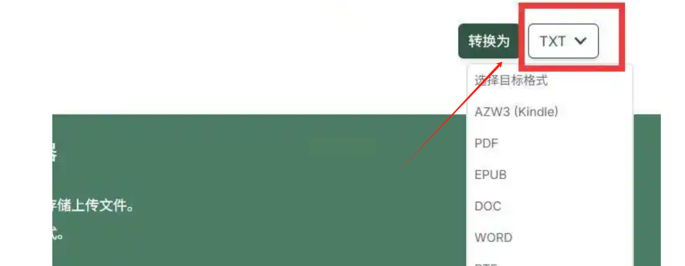 2. 选择格式:在下拉菜单里选【EPUB转TXT】(如果是PDF转TXT也可以直接选PDF格式)