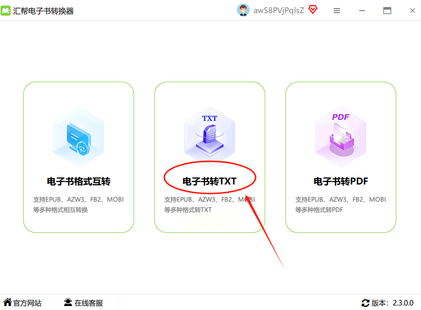 1. 打开软件:打开后首页就能看到“电子书转TXT”选项,点进去