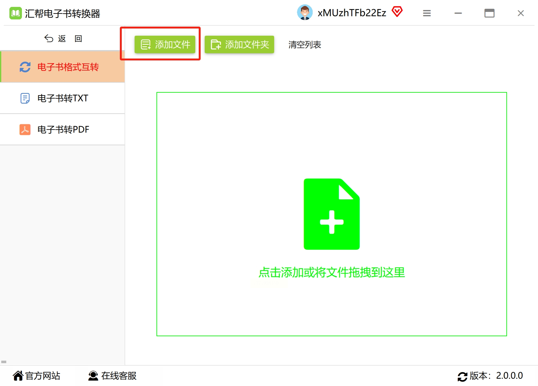 2. 添加文件:支持两种方式,直接点击「添加文件」浏览本地epub文件,或更简单的——直接把文件拖进软件窗口,批量导入也能一次性搞定。